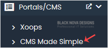 4. On the left side, type CMS Made Simple in the search box, then click the CMS Made Simple link that appears.