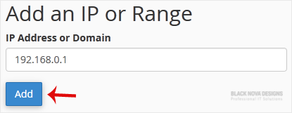 3. Under the Add an IP or Range, you should enter the IP Address you want to block.